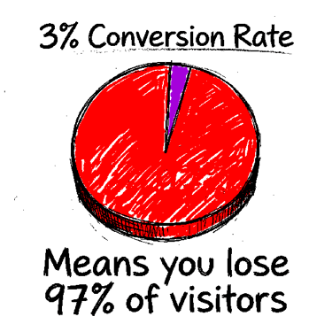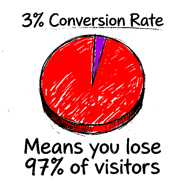 Which means 970 out of every 1000 visitors you get are leaving without giving you their email or their money.
